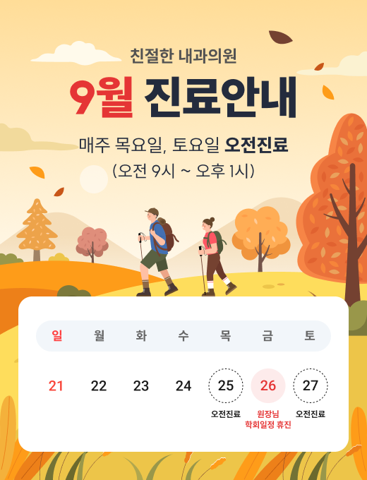 9월 진료일정입니다.